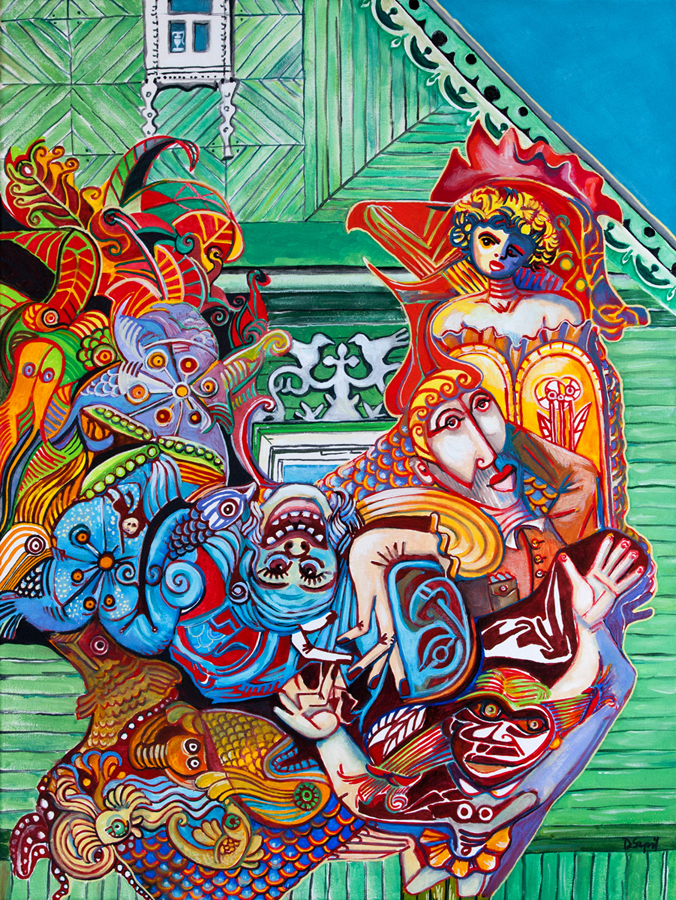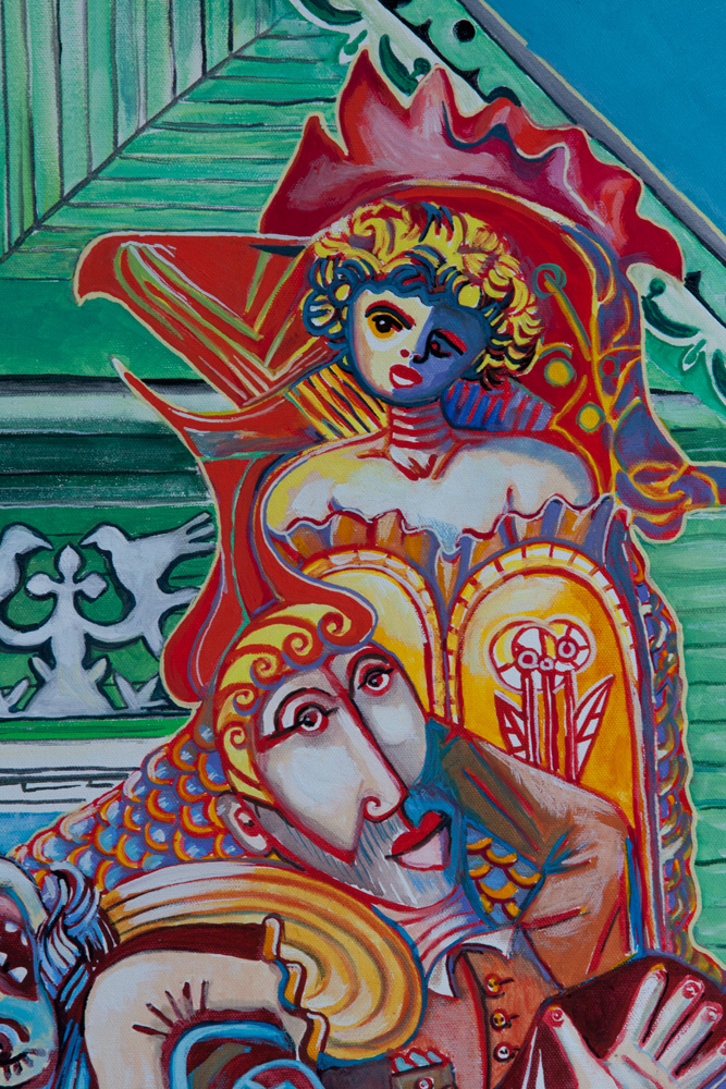 Lubię niewiadomą w malowaniu. Biorąc płótno, nie wiem jak będzie wyglądał końcowy efekt, co pojawi się w międzyczasie, co przekształci, co usunę, co zostawię. Kogut wyłonił się na obrazie po kilku godzinach pracy, nie od razu go rozpoznałam, ale ucieszyło mnie to spotkanie.